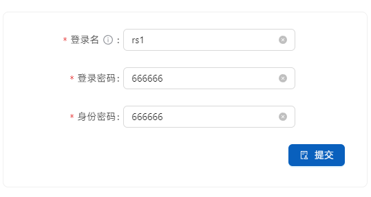 用户初次登录时,会要求更改初始密码及设置身份验证密码,身份验证密码是在处理表单时确认身份的密码,有别于登录密码。登录名可以取自己熟悉的,但建议不要更改。