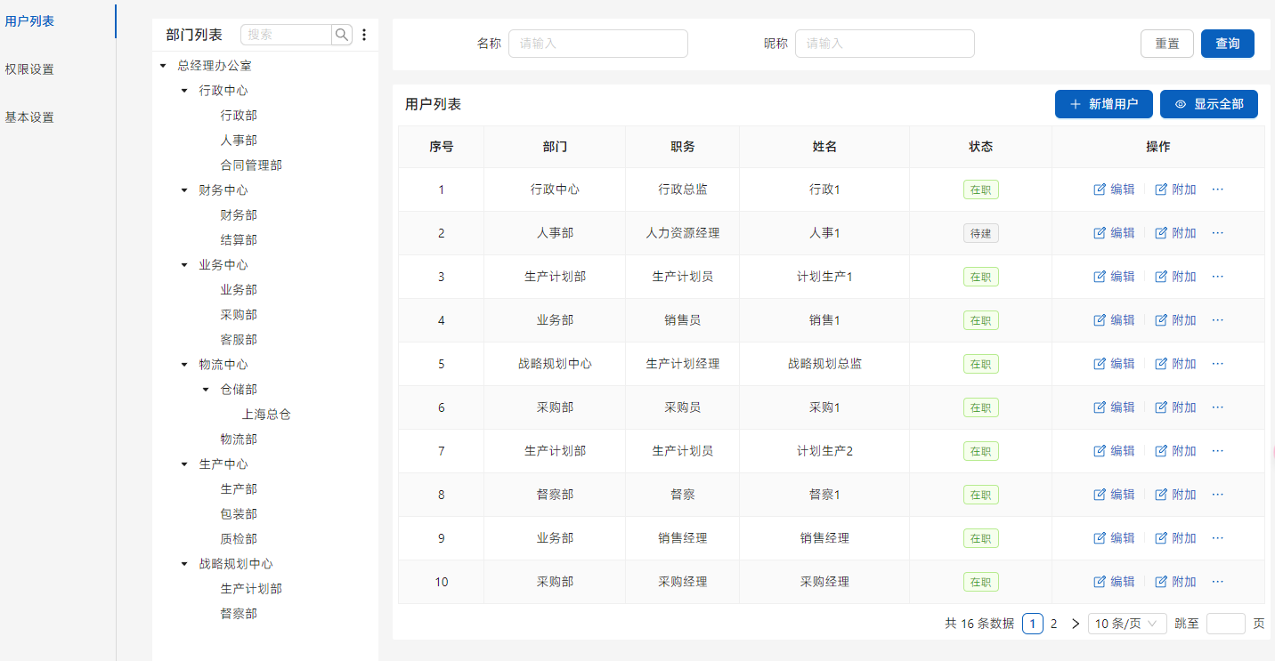 点击用户列表右侧的[...],选择[重置密码],可以重置用户的密码为初始密码“666666”。请记得要求用户登录后及时进行修改。用户初次登录