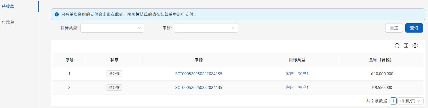 在[财务管理]-[收款单]-[收款需求]中显示待收款的项目。