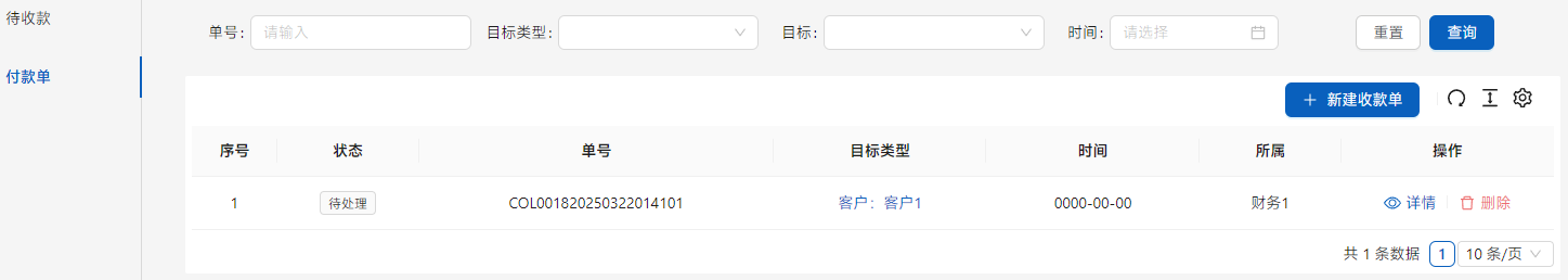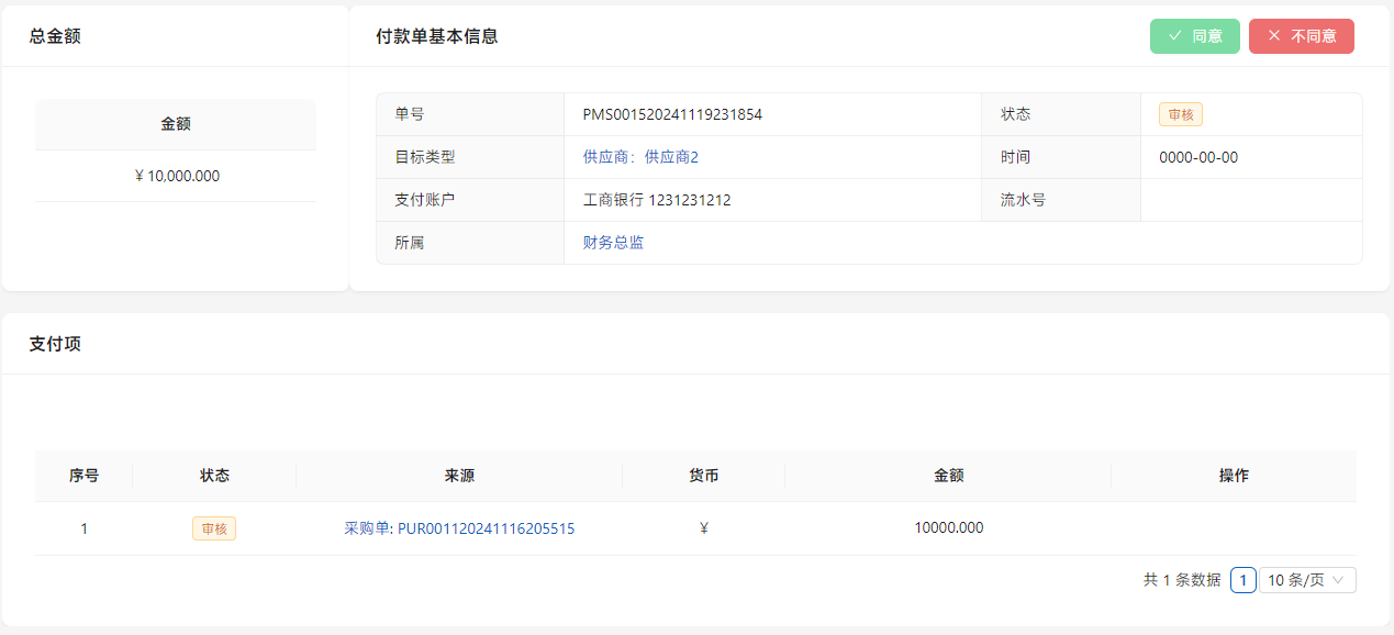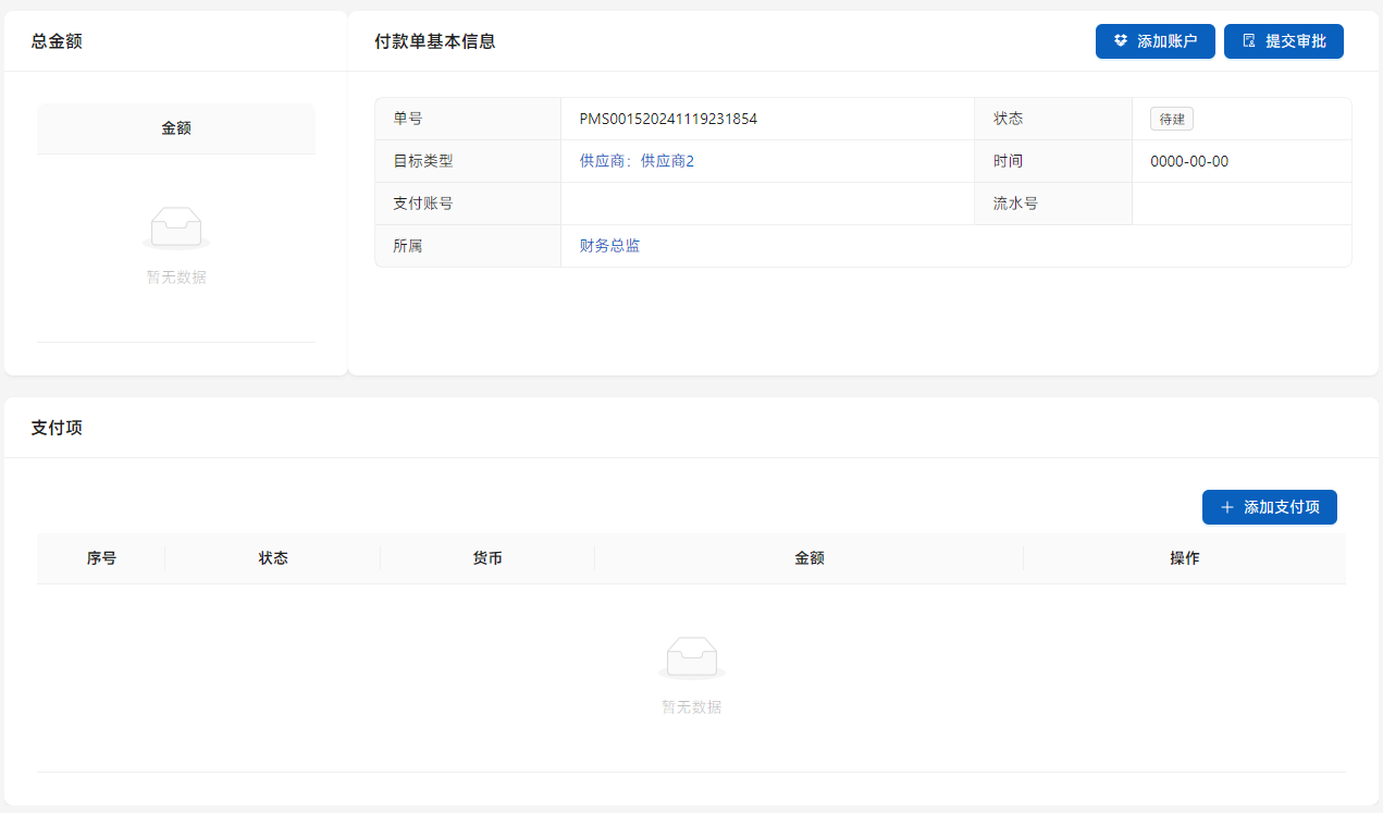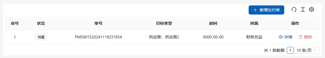 新建支付单后,点击列表右侧的[详情],进入编辑内容。