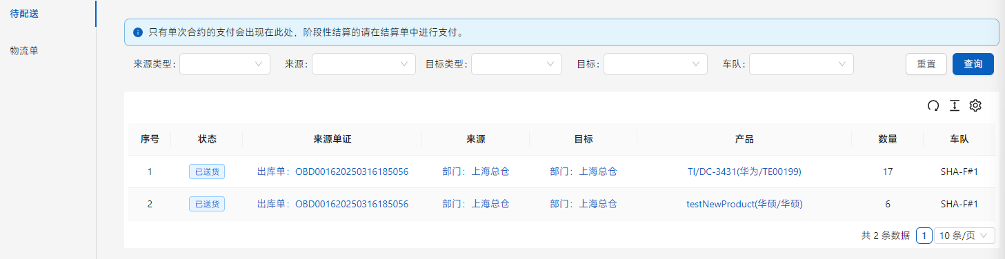 [物流单]是公司发货自建物流的凭证。在[物流管理]-[物流单]-[待配送]中有需要配送的信息。