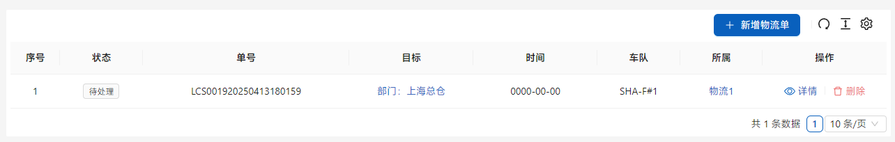 在[物流管理]-[物流单]-[物流单]中显示物流单列表。
