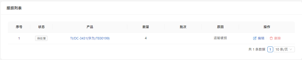 如果在配送过程当中产生损耗,点击列表右侧的[报损],其他原因交由仓库进行报损。