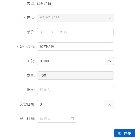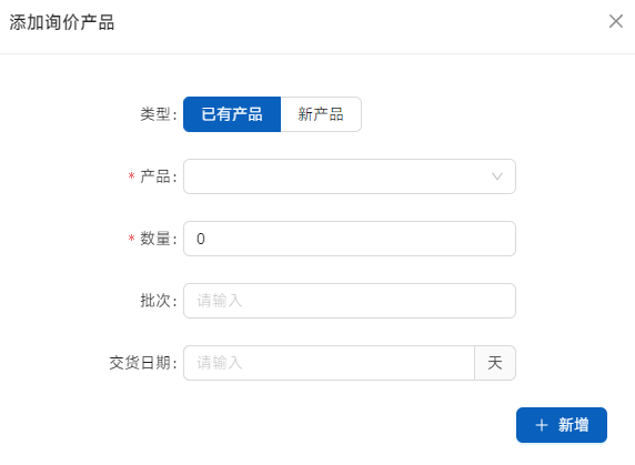 点击[新增询价产品]是额外的产品询价,供采购部门参考用。