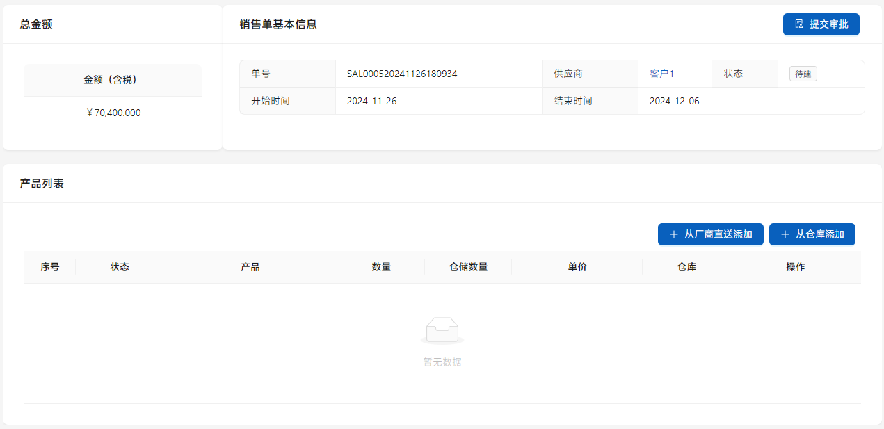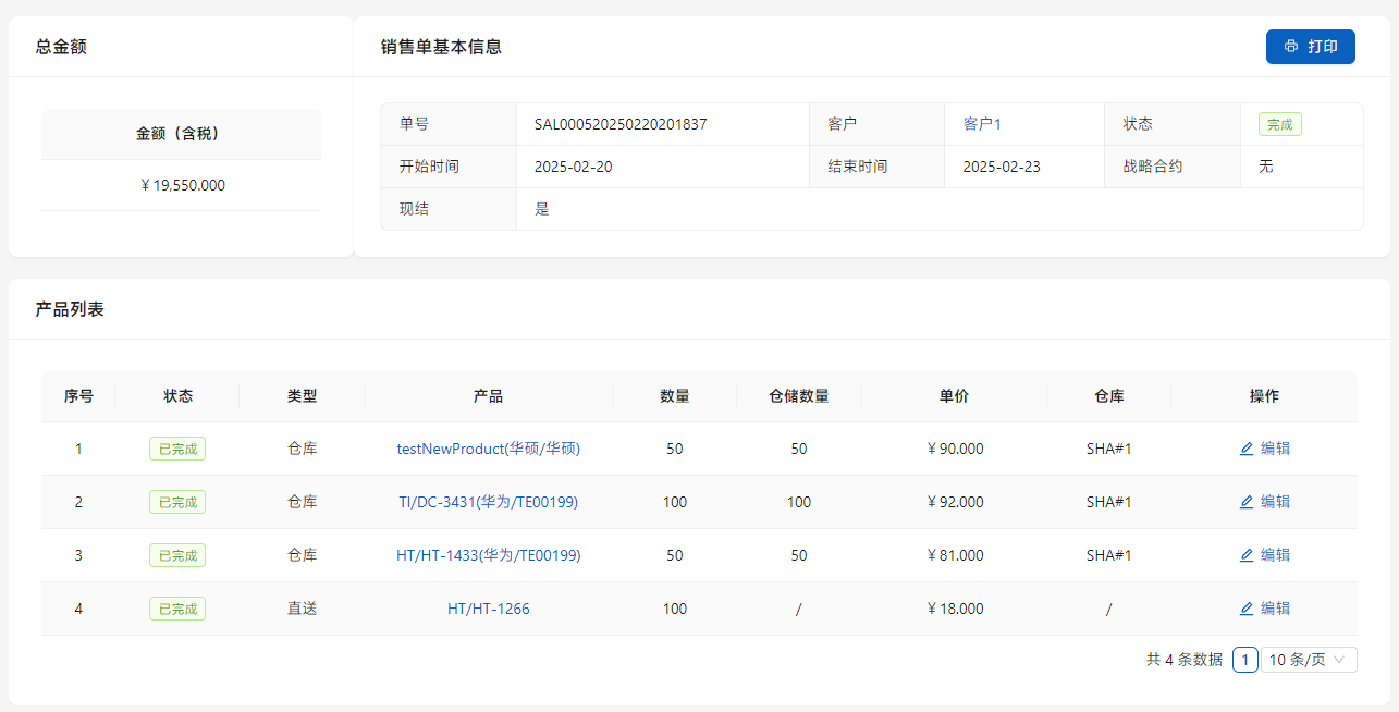 点击列表右侧的[详情]编辑销售单内容。