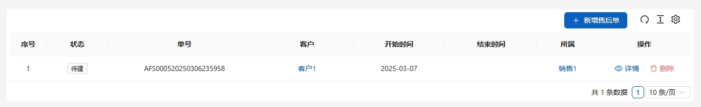在[业务管理]-[售后单]-[售后单]中,可以新建售后单。点击列表右侧的[详情]进入售后单进行处理。