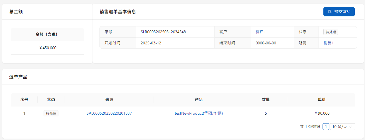 点击列表右侧的[详情]进入销售退单进行处理。