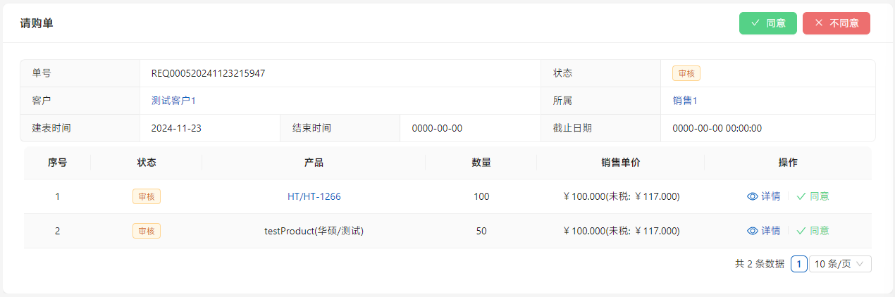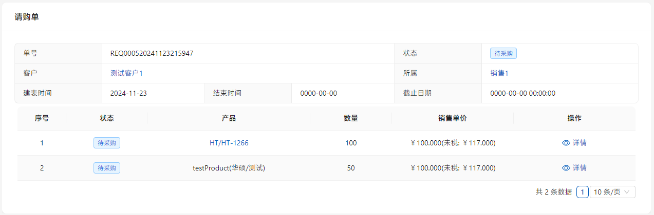 点击列表右侧的[详情]编辑请购内容。