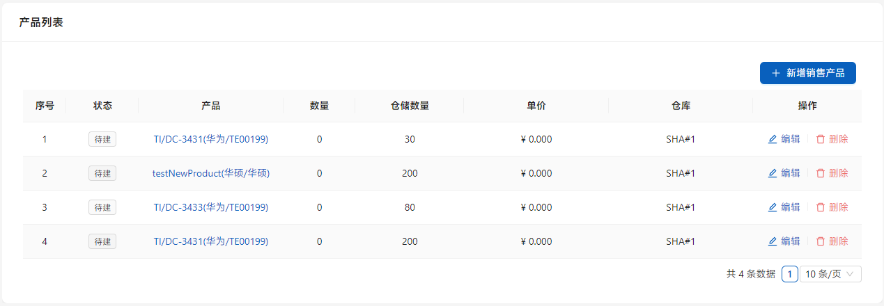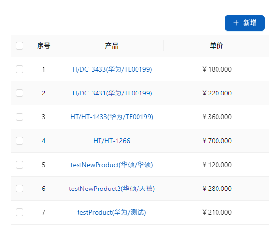 添加后,[已有产品]显示为链接,点击可以查阅产品信息,[新产品]则无链接。