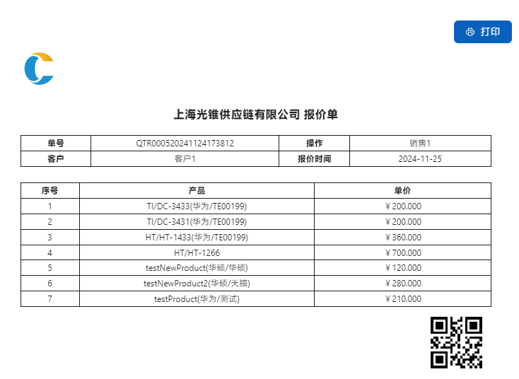 点击[打印],打印报价单发送给客户,然后点击[确认报价]完成报价。