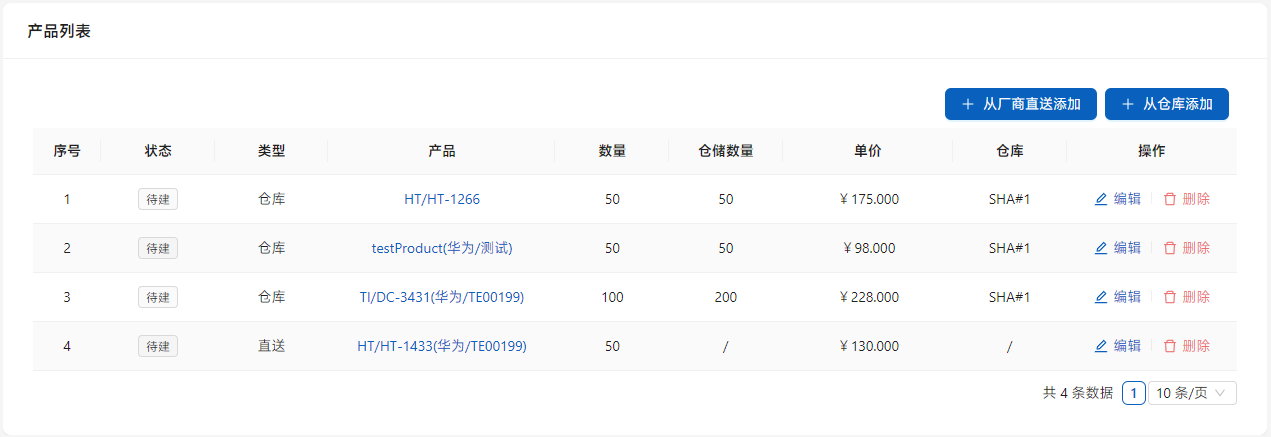 点击[从厂商直送添加],列表中是可以由厂商直送的产品。