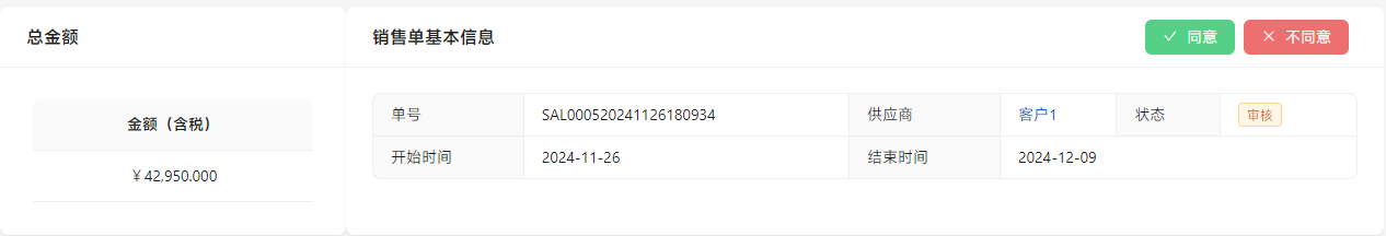 点击[同意]通过审核,点击[不同意]退回修改。