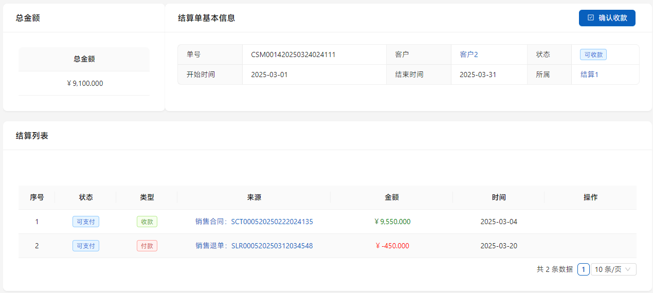 [同意]后,点击[确认支付],根据总金额,推送支付或者收款信息(总金额成为负数)。