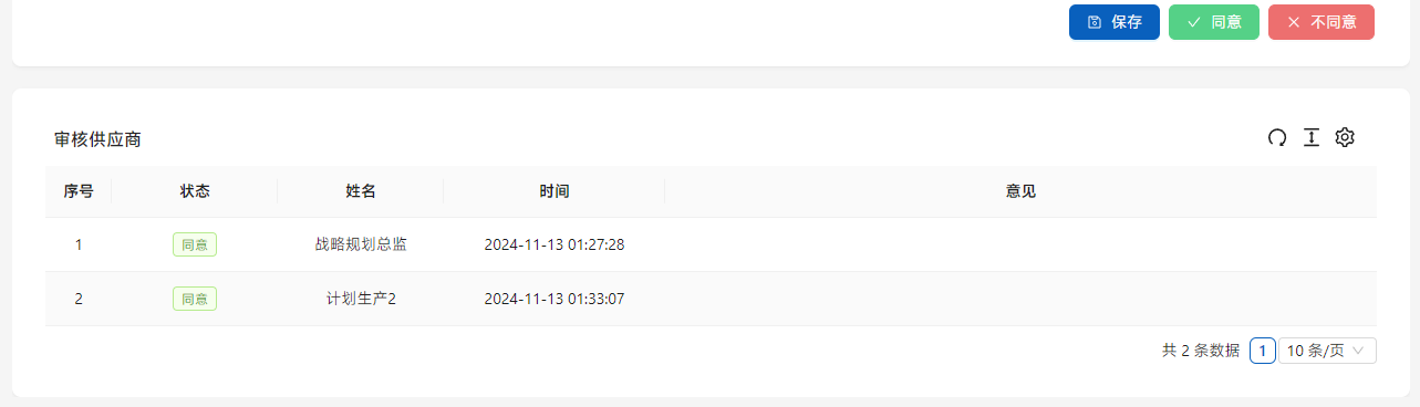 待审核团队的人员全部同意之后,拥有供应商审核权限的人可以看到最终的审核选项。