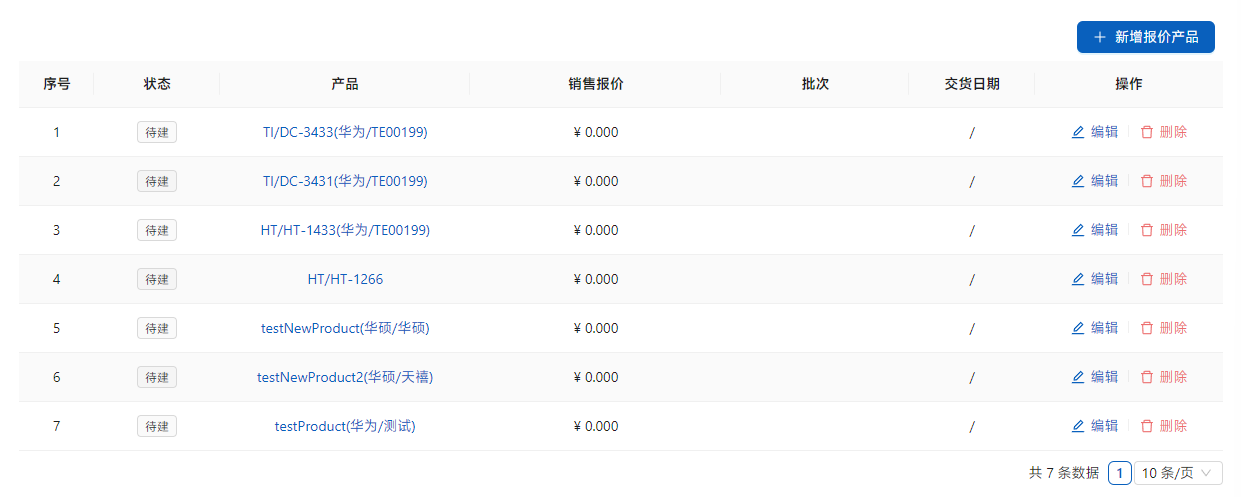 点击[新增报价列表],点击列表右侧的[详情]编辑详情。