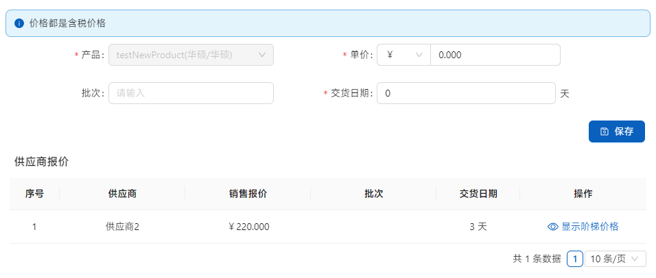 新增完毕后,点击列表右侧[编辑],设定报价价格。报价价格统一为含税价格。下方会出现现有的供应商报价作为参考。