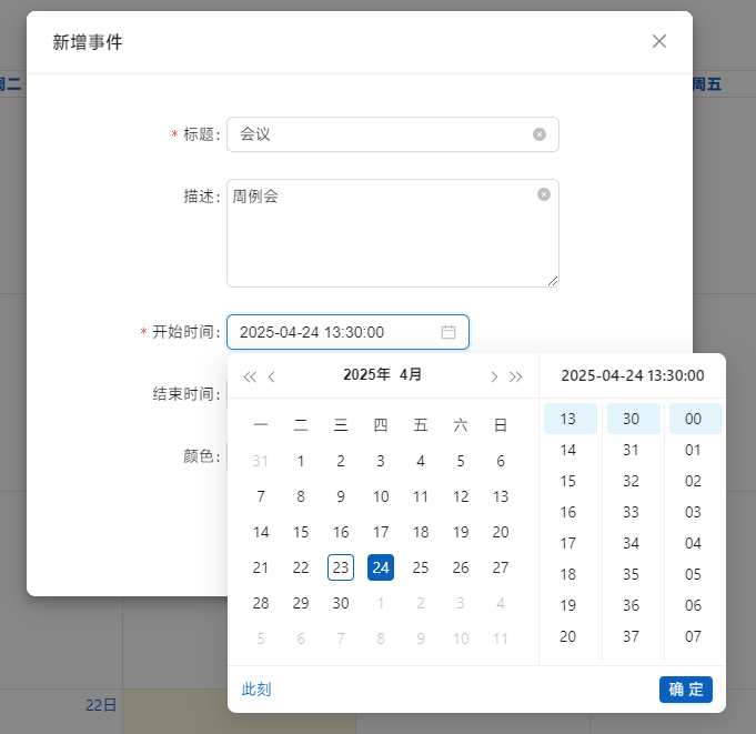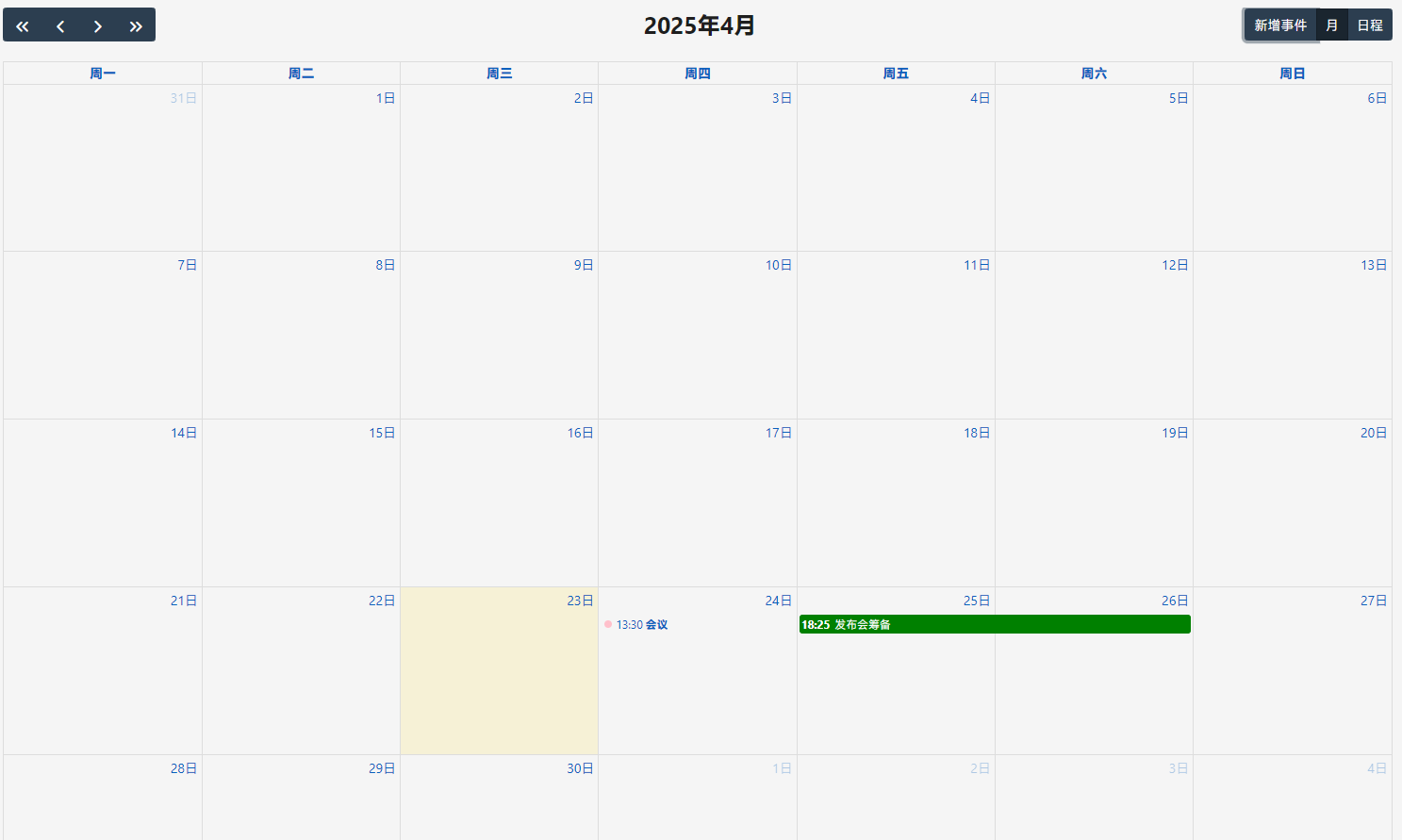 点击[新增事件]可以添加提醒,提醒后可以选择[不提醒]来关闭,默认为5分钟提醒一次。