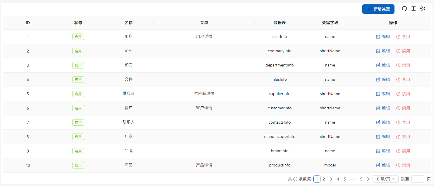是模块和数据库表对应的设置,其中关键字段是用于操作记录的调用。